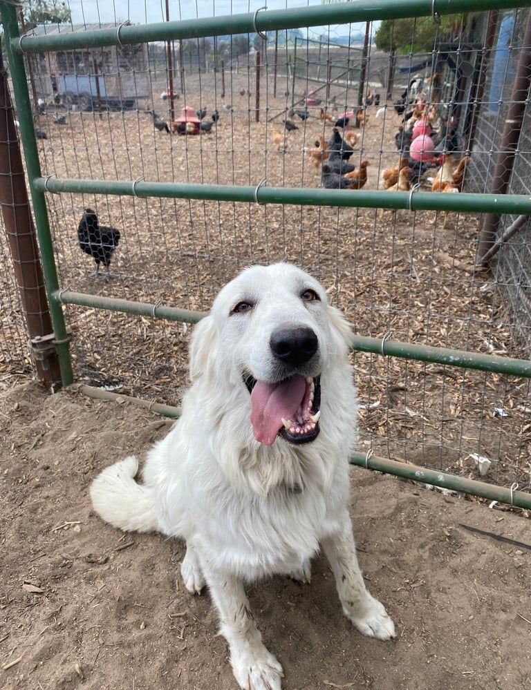 Bucky is a 1-year-old male looking for his forever home — and this boy is the full package for anyone seeking a solid working LGD or a farm companion. Currently in a loving foster home in Tehachapi, Bucky has been exposed to a wide variety of livestock and birds and he’s shown great behavior and instincts around all of them!