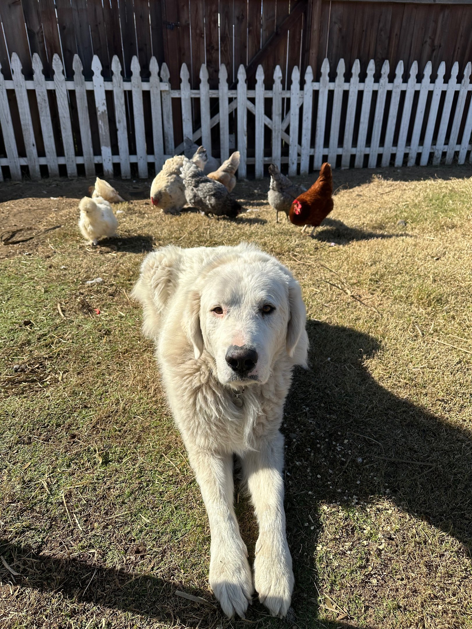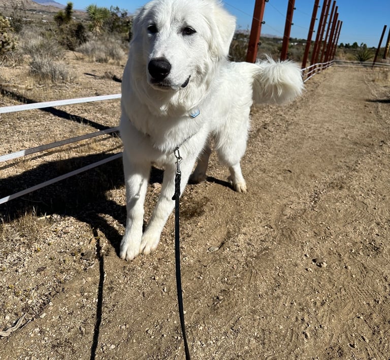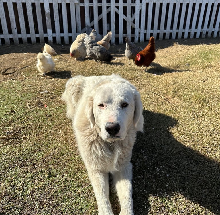 He carries all the hallmarks of a true livestock guardian in the making: confidence, awareness, and a natural instinct to manage his surroundings. He likes to be the ruler of his roost, but in a balanced, respectful way. And with animals? He’s been a star. Sheep, goats, poultry—he’s doing wonderfully with all of them.