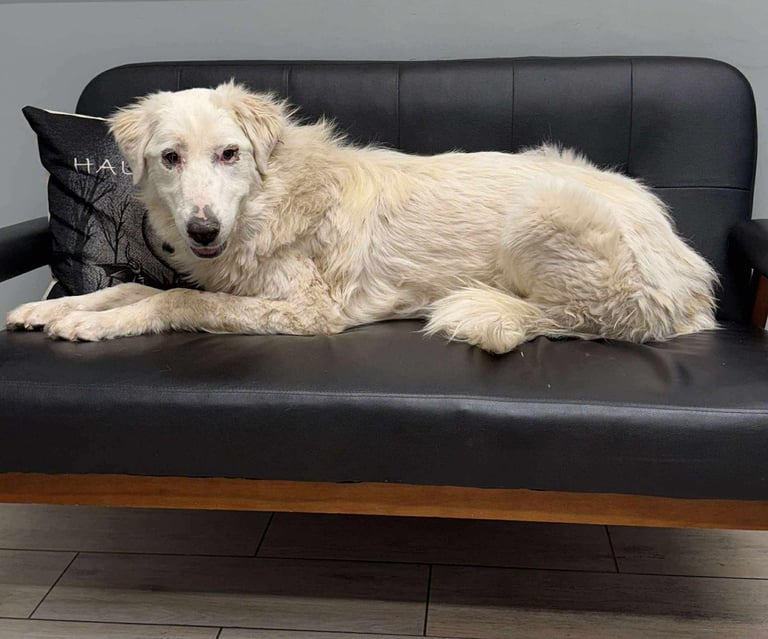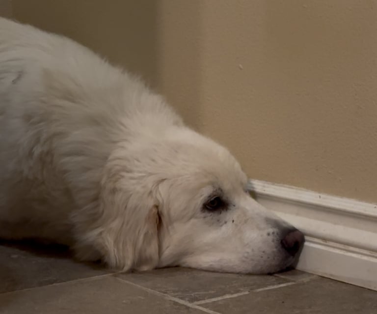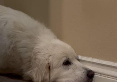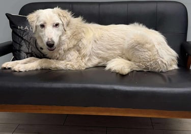 Meet Hades—a 2-year-old Great Pyrenees whose strength lies in his quiet resilience. Born with epilepsy, Hades requires daily medication, a strict ketogenic diet, and round-the-clock care to stay stable and safe. He lives in the heart of the sanctuary, in a cozy library without a door, where he can be gently monitored at all times and in the middle of the action..