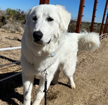 He carries all the hallmarks of a true livestock guardian in the making: confidence, awareness, and a natural instinct to manage his surroundings. He likes to be the ruler of his roost, but in a balanced, respectful way. And with animals? He’s been a star. Sheep, goats, poultry—he’s doing wonderfully with all of them.
